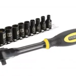 Set 11 tubulare FatMax 1/4″ cu clichet 0-94-607 Stanley. Tubulare : 4 mm, 5 mm, 5.5 mm, 6 mm, 7 mm, 8 mm, 9 mm, 10 mm, 11 mm, 13 mm cu prindere patrata de 1/4″. Adaptor cu clichet cu prindere patrat de 1/4″.