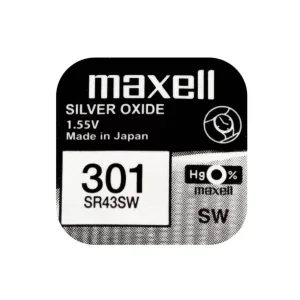 Baterie ceas Maxell SR43SW V301 AG12 1.55V oxid de argint 1buc. Maxell este cel mai mare producător mondial de baterii de ceas ecologice, fără mercur. Celulele cu oxid de argint sunt principalele celule cu durată lungă de viață utilizate în ceasurile de mână cuarț, unde...