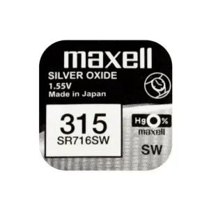 Baterie ceas Maxell SR716SW V315 1.55V oxid de argint 1buc. Maxell este cel mai mare producător mondial de baterii de ceas ecologice, fără mercur. Celulele cu oxid de argint sunt principalele celule cu durată lungă de viață utilizate în ceasurile de mână cuarț, unde este...