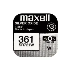 Baterie ceas Maxell SR721W V361 SR58 1.55V oxid de argint 1buc. Maxell este cel mai mare producător mondial de baterii de ceas ecologice, fără mercur. Celulele cu oxid de argint sunt principalele celule cu durată lungă de viață utilizate în ceasurile de mână cuarț, unde...